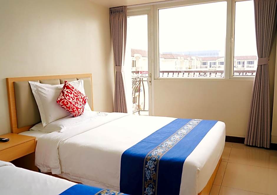 This twin room features a balcony, air conditioning and tile/marble floor.